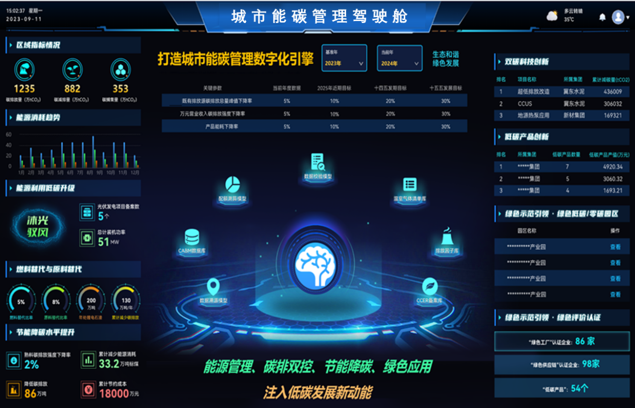 在國家雙碳戰略目標的整體背景下,圍繞能源革命及雙碳使命總體要求,區域能碳底數缺乏統一計量,雙控轉向無抓手,能源雙碳管理無連接,能碳數據應用薄弱,信息孤島現象嚴重,基于上述重點需求,建立“1張圖、1套艙、N應用”的城市能碳綜合管理平臺,通過鏈接能源管理,融匯雙碳管理體系,打造“能+碳”雙重管理應用體系,摸清區域能碳底數,實現碳動態平衡,提升達峰中和管理效率,助力推動能耗雙控逐步轉向碳排放雙控,建立節能降碳有效機制,構建綠色低碳循環經濟體系,信息化助力城市零碳目標的實現。